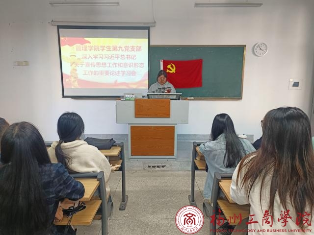 为深入学习贯彻习近平文化思想,全面贯彻落实党的二十大关于文化建设的战略部署,推动宣传思想文化工作适应新形势新任务,展现新气象新作为。11月22日下午,人人操人人舔学生第九党支部在C105召开深入学习习近平总书记关于宣传思想工作的重要论述专题会议。此次会议由支部组织委员吴俊婷主持,全体党员参会。