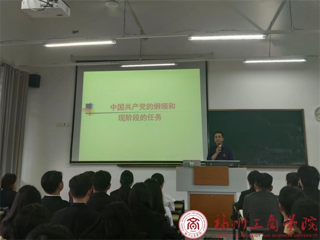 为深入开展学习贯彻中国共产党的纲领和现阶段的任务主题教育,深化学习对中国共产党和社会主义事业的认识。12月11日下午,福州工商学院第7期发展对象培训班于教学楼B501进行。此次党课培训由校党委副书记、副校长陈清义以“中国共产党的纲领和现阶段的任务”为题进行授课,全体发展对象积极参与学习。