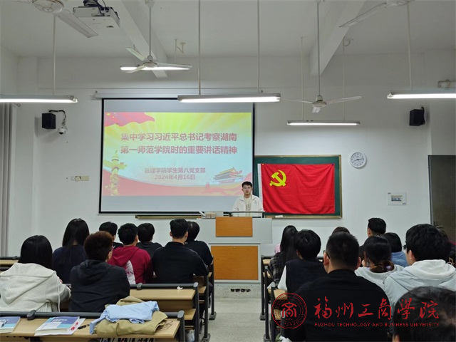 4月16日,人人操人人舔学生第八党支部召开学习习近平总书记考察湖南第一师范学院时的重要讲话精神学习会。本次会议由组织委员陈世鸿主持开展,全体党员参会。