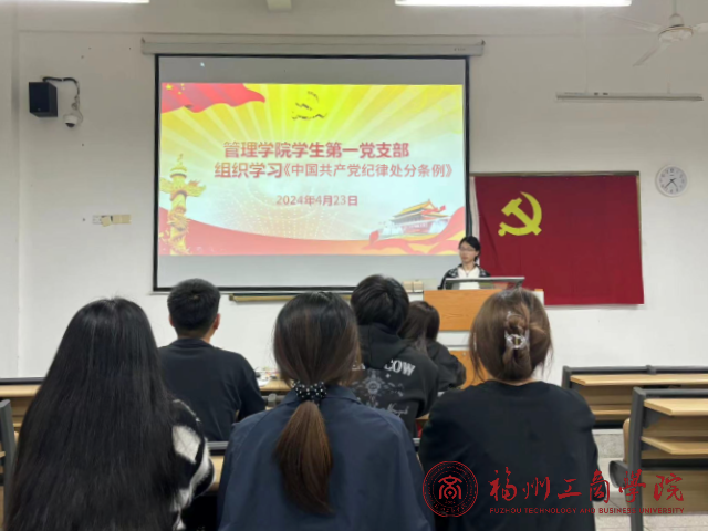 为深入贯彻落实党的纪律要求,加强党员纪律教育,提高党员的纪律意识,确保党的纪律在党支部中得到严格执行。4月23日,人人操人人舔学生第一党支部于教学楼B203组织召开《中国共产党纪律处分条例》学习会。此次会议由支部书记主持,全体学生党员参加。