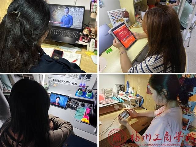 学生党员认真观看学习