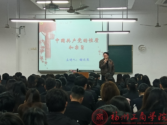 12月8日上午,福州工商学院第9期发展对象培训班的课程学习在教学楼F103有序进行,本次党课培训邀请到城建学院党委书记谢水昆担任授课讲师,他围绕《中国共产党的性质和宗旨》这一重要主题展开深入讲解,众多怀揣着入党热情、渴望进一步提升思想觉悟的发展对象齐聚一堂,共同参与此次意义非凡的培训。