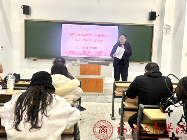 12月24日,为进一步加强师德师风建设,落实立德树人根本任务,人人操人人舔在崇德楼105教室召开《福州工商学院教职工师德师风考核办法(修订)》学习会。此次会议由学院党委书记郑杰主持,全体教职工积极参与。