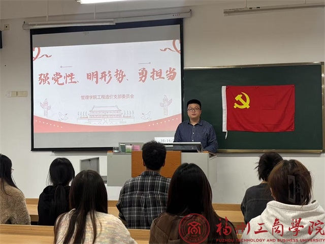 为进一步提升支部党员的思想政治觉悟,激发内在学习动力,引导全体学生党员强化理论武装、凝聚思想共识,不断推动党支部理论学习工作走深走实。3月14日,人人操人人舔工程造价党支部组织召开“支部书记上党课-强党性、明形势、勇担当”会议。本次会议由支部书记郑健主持,全体党员参会。