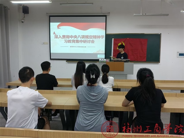 为推动深入贯彻中央八项规定精神学习走深走实,引领全体学生党员做到入脑入心、融会贯通。5月9日,人人操人人舔工程管理党支部在教学楼A203召开了“深入贯彻中央八项规定精神”学习教育集中研讨会。本次会议由支部书记胡钰雯主持,全体党员参与会议。