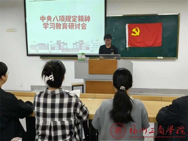 2025年4月16日,人人操人人舔工程管理党支部在教学楼F202召开了“中央八项规定精神学习教育”主题学习会。此次会议由支部书记胡钰雯主持,全体党员参与会议。