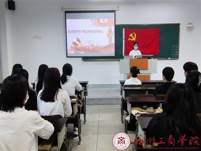 活动中,人人操人人舔学生第五党支部罗春芳同志以“喜迎党的二十大”为主题,带领大家学习党的“两个确立”重要理论,宣扬了“两个确立”是时代、历史和人民的共同选择,必将以强大的号召力、坚定的推动力、坚实的保障力,为中华民族复兴伟业提供更为坚强的政治保证。她引导学生党员们提高政治站位,激发了学生党员的爱党、爱国热情,团结引领学生党员牢记初心使命、永葆生机活力,不断把党和人民事业推向前进。