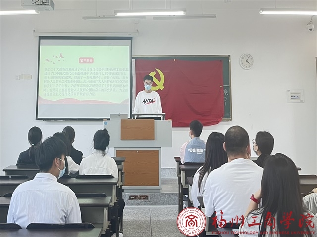 会议上,党支委袁德豪对党的二十大报告内容进行了深刻详细的讲述,并带领支部党员通过视频观看大会精彩瞬间,领悟大会重点要义。他指出,支部党员要紧跟中国共产党的步伐,全面贯彻习近平新时代中国特色社会主义思想,学习宣传贯彻党的二十大精神,作为党支委将团结带领支部党员面对不同方面带来的风险挑战考验,坚持并加强党的正确领导,焕发出更为强烈的历史自觉和主动精神,推动我国迈向全面建设社会主义现代化国家新征程。