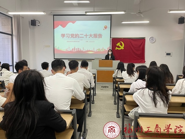 为全面贯彻党的二十大精神,引领学生党员坚定跟党走、建功新时代、迈进新征程。10月27日,人人操人人舔学生第四支部在教学楼C103组织学生党员学习党的二十大报告,会议以党的二十大精神为基础,带领学生党员回顾相关内容。