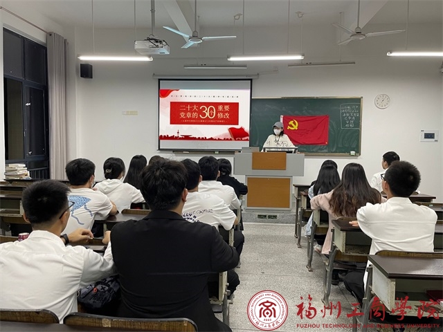 会议伊始,支部书记叶锐洁带领党员同志们了解《中国共产党章程》主要内容,领悟党的二十大修改《中国共产党章程》的重大意义。她强调,修改党章的重大意义是深入学习贯彻党的创新理论,推进党和国家事业发展,深入推进新时代党的建设新的伟大工程的需要与贯彻落实党的二十大精神的需要。随后,支部组织委员林倩钰发表学习感想:学习新修订《中国共产党章程》有利于坚持和加强党中央集中统一领导、坚持不懈用习近平新时代中国特色社会主义思想凝心铸魂,增强党组织政治功能和组织功能、坚持以严的基调强化正风肃纪、坚定不移推进全面从严治党。作为学生党员,我们要跟进党的脚步,增强“四个意识”、坚定“四个自信”、做到“两个维护”,贯彻执行党的基本路线和各项方针、政策。