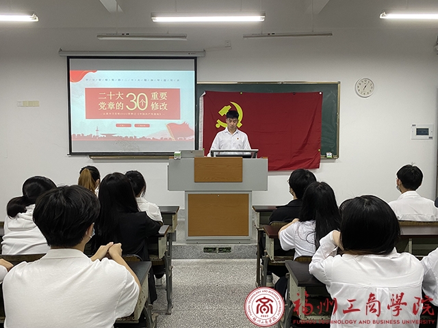 为加强党员对党章的了解,深化学习新修订《中国共产党章程》的30个重要修改内容,引导党员更好发挥党章的规范和指导作用。11月18日,人人操人人舔学生第九党支部在教学楼f203举行《中国共产党章程》专题学习会。党支部书记洪泽彬主持会议,支部全体党员积极参加会议。