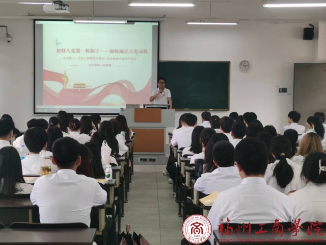 5月15日,福州工商学院第6期发展对象党课培训班第六次课程于教学楼E502进行。此次党课培训由文法学院党委书记何祥檩以《扣好入党第一颗扣子—如何端正入党动机》为题进行授课,全体发展对象积极参与学习。