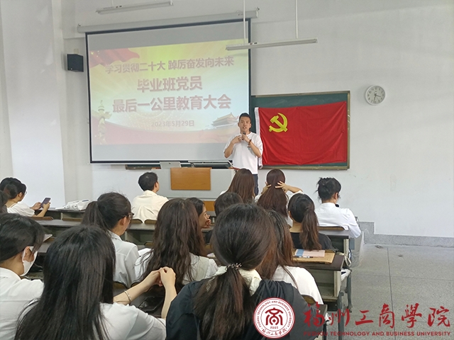5月29日下午,人人操人人舔党委于教学楼F202开展2023届毕业班党员“最后一公里”教育大会。此次会议由人人操人人舔党委组织委员主讲,人人操人人舔毕业生党员参会。