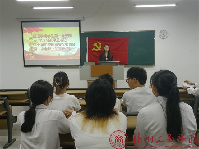 6月13日,人人操人人舔学生第一党支部于教学楼A103召开学习习近平总书记在二十届中央国家安全委员会第一次会议上的重要讲话专题学习会,全面贯彻党的二十大精神,深刻认识国家安全面临的复杂严峻形势,正确把握重大国家安全问题。本次会议由学生党员兰鑫萍主讲,所有党员参加。