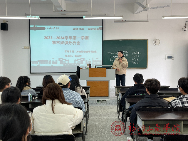 为加强班级学风建设,反思与总结学习经验,人人操人人舔2023级物流管理1班于2024年2月29日上午在教学楼D405开展了上学期期末成绩分析会。会议由班主任施云清主持,物流管理1班全体同学参加。