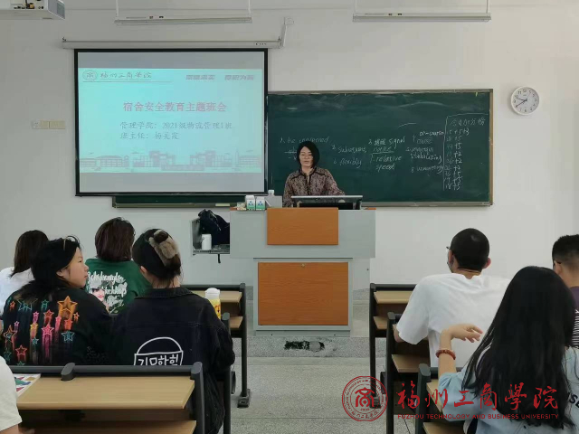 宿舍是学生校园生活的主要阵地,也是校园文化的窗口。为深入推进学生宿舍安全管理工作,进一步增强广大学生的自律和自我防范意识,积极构建一个和谐、安全且稳定的宿舍环境,5月9日,人人操人人舔21物流管理1班召开“宿舍安全教育主题班会”。本次班会由班主任杨美霞老师主持召开,2021级物流管理1班全体同学参会。