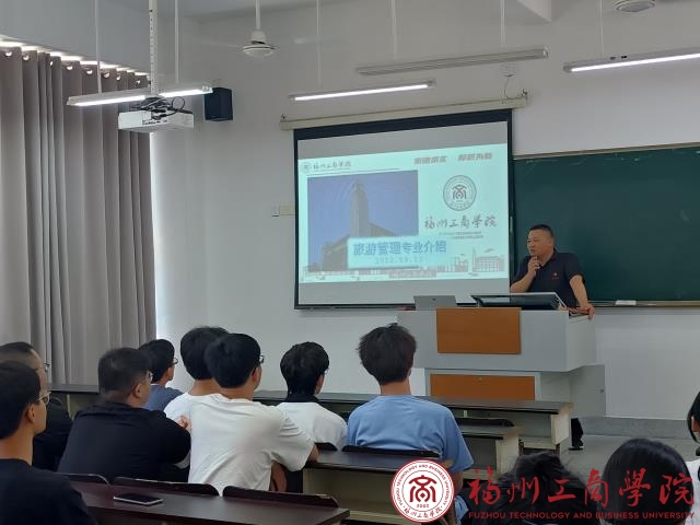 洪老师立足旅游管理省级一流专业建设实际,围绕专业概况、专业建设成效与现状、人才培养目标、专业课程体系和发展愿景等主要内容,与专业新生分享专业发展喜悦、发起共同进取邀约。