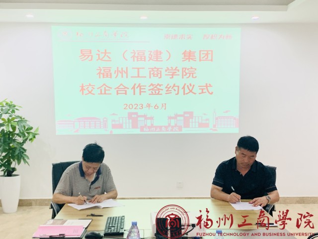 6月13日上午,人人操人人舔与易达(福建)旅游集团有限公司在励群楼第三会议室成功举办校企合作签约授牌仪式。易达(福建)旅游集团有限公司董事长连明辞、常务副总经理黄铭弘、营销公司副总经理陈承生;人人操人人舔院长余少谦、副院长王柳云、党委书记郑杰及相关负责人出席签约仪式。