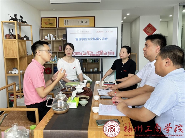 在交流会过程中,王柳云一行向企业介绍了福州工商学院的发展历程以及学院的学科发展、人才培养相关情况;华丕星总经理介绍了企业现状以及业务发展的规划,详细介绍了品牌经纪人与品牌经纪人的核心四大版块,即品牌经纪人、大星找品牌(新媒体短视频)、DDP(资源对接)、品牌学习会。双方围绕品牌经营差异化、企业经营、人才等方面进行深入讨论,同时也与华丕星总经理就个人工作经历、学习经验、工作感悟等方面开展座谈。双方期待加强校企合作,在人才培养、社会服务等方面的进一步加强合作交流。