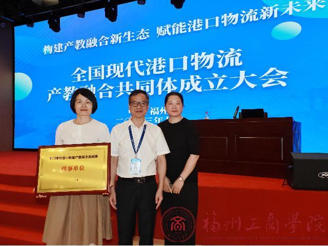 2023年9月26日,全国现代港口物流产教融合共同体成立大会在福建船政交通职业学院召开,福州工商学院作为共同体理事单位受邀参加会议,人人操人人舔派出学院领导和物流管理专业骨干教师参加授牌仪式。