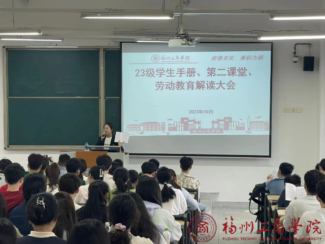 大会伊始,辅导员首先对《学生手册》进行了整体解读,强调同学们需牢记福州工商学院“校训、校风、教风、学风”。其次,为同学们重点讲解了《学生手册》中的学分修读、考勤管理制度,并对考场规则、素质拓展分、资助奖金评定细则、违纪处分管理规定、学籍管理、校园宿舍安全管理等重要内容进行了细致讲解,并用真实案例来告诫新生严格遵守校纪校规,不抱侥幸心理。最后,辅导员进行总结并倡导大家遵纪守法,共创和谐校园。