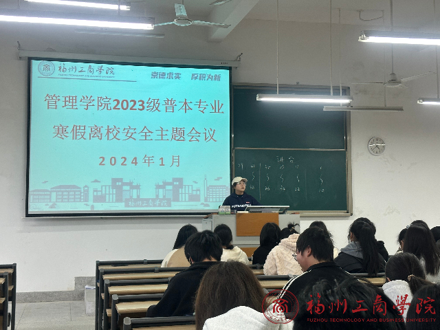 会议首先对假期返家要求进行说明,离校前所有同学应当搞好寝室卫生,及时反锁门窗,断水断电。在离校途中,注意出行安全,返家要选择乘坐正规运营的车辆。寒假期间一方面要提高安全防范意识,严防各类安全事故,确保自身人身和财产安全;另一方面要严防各类电信诈骗和网络诈骗,增强金融风险防范意识。会议最后,辅导员对寒假期间的实践活动进行讲解,鼓励大家积极参与实践活动,丰富寒假生活。