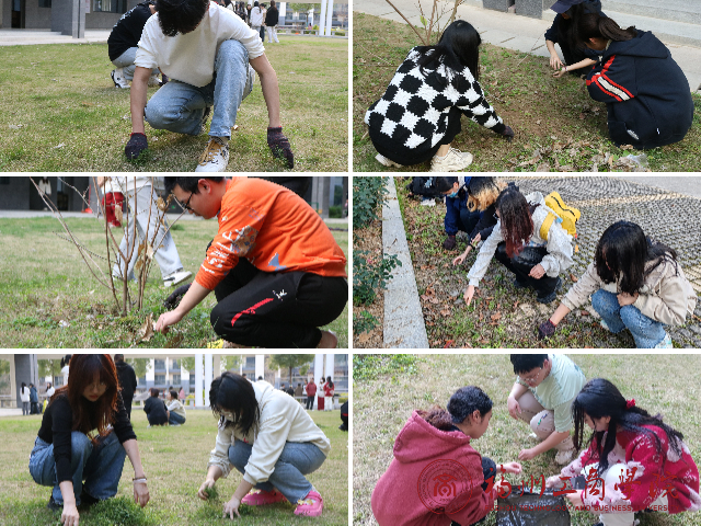 为积极响应我国在绿色校园建设上提出的相关要求,弘扬志愿服务精神,落实劳动实践教育,使学生身心素质得到健康发展。3月5日,人人操人人舔组织团学干部于教学楼A至F以及停车场开展绿地美化行动。