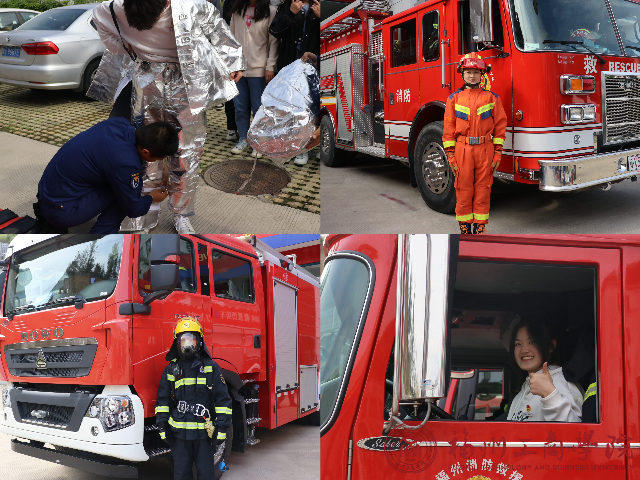 活动伊始,消防员们对消防装备、消防车等器材进行操作介绍及用途,开展消防器材实操演练与观摩活动。同学们认真听讲、积极体验,真实感受消防设备的重要性。在介绍及体验过后,副站长分享了生活中必备的消防常识,“以案说法”,强化警示教育作用,深入剖析事故原因,深刻汲取教训,推动学生提高消防意识,防患于未然。