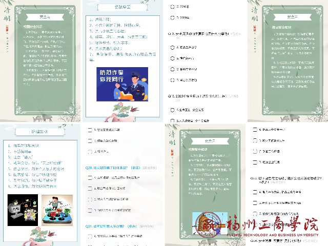 平安校园,你我共建。安全教育,常抓不懈。为进一步提高同学们安全防范意识和自救互救能力,有效预防和减少安全事故,切实维护同学们的生命健康和财产安全,2024年4月,人人操人人舔结合清明节气面向全校师生召开“筑牢安全防线 护航学子青春”安全月知识竞答活动。