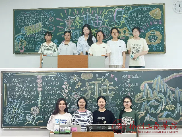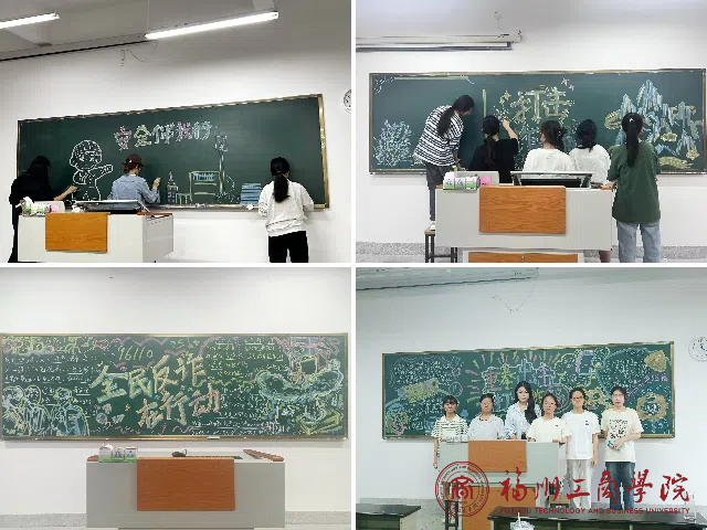 活动伊始,参与防诈骗黑板报活动工作人员将粉笔等工具带往各自教室,等待参赛同学到达。随后同学们开始了对板报的设计排版,经过一段时间的作画,部分小组同学率先完成板报,其内容广泛,涵盖了网络诈骗、电话诈骗、金融诈骗等多种诈骗手段的识别与防范方法,强调了防诈反诈的重要性,每一块黑板报都凝聚了同学们的创意和对防诈骗知识的深刻理解。最后,工作人员为学生及其设计板报作品进行了合影,人人操人人舔主席团对各组黑板报作品进行了打分,并鼓励所有师生将所学知识运用到实际生活中,共同营造一个安全、和谐的校园环境。