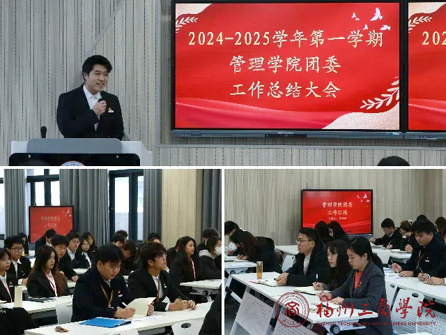 会议伊始,团委副书记吴雅丽详细阐述了本学期团委的各类思想引领活动,从团日活动的深入开展到青年大学习的扎实推进,数据详实、成果斐然,彰显了团委在凝聚青年力量上的担当。团委信息宣传中心主任苏文琪,汇报宣传成果,成果涵盖推文数量、宣传阅读量,视频照片量等均创新高,一系列创意海报与短视频有效提升学院活动影响力,致力为学院形象的塑造添砖加瓦。随后,学生会秉承服务同学的宗旨,逐一回顾本学期工作成果,中秋节博饼活动、营销大赛等活动,亮点纷呈。切实丰富同学们课余生活、助力成长成才。最后,自律会则聚焦校园日常秩序维护,从宿舍卫生督查到课堂考勤监督,各项数据直观反映干部们一学期的坚守,着力以严谨的态度为良好校风、学风的建设保驾护航。