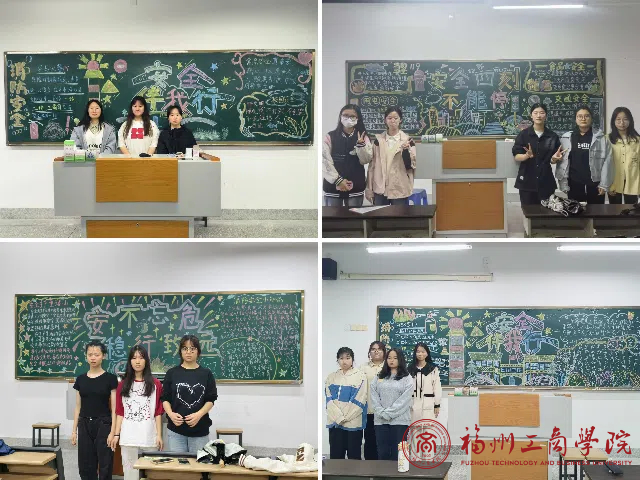 活动初始,参与安全宣传黑板报活动的工作人员将粉笔等工具带往各自教室,等待参赛同学到达。随后同学们开始了对板报的设计排版和作画,其内容广泛,涵盖了交通安全、消防安全、食品安全、防溺水安全等多个方面,旨在全方位普及安全知识,强调了安全知识宣传的重要性,每一块黑板报都凝聚着同学们对安全知识的深刻认识。最后,工作人员为学生及其板报作品进行了合影,人人操人人舔主席团对各组黑板报作品进行了打分,并鼓励所有师生将所学知识运用到实际生活中,共建安全和谐的校园环境。