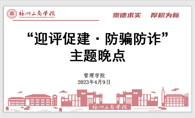 为了扎实做好审核评估各项准备工作,深化审核评估学习宣传,同时推进网络安全建设,提高学生网络安全意识,提高自我防范能力。4月9日晚,人人操人人舔2022级辅导员在教学楼F301为2022级各专业学生开展以“迎评促建·防骗防诈”主题晚点。