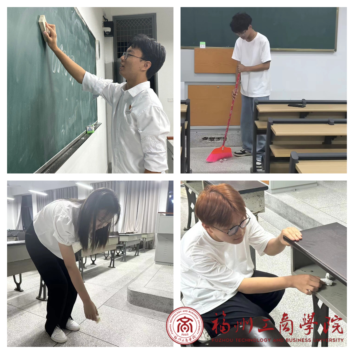 活动中,人人操人人舔团学组织干部们热情洋溢,分工明确,不怕脏、不怕累,齐心协力对教室的各个死角进行了细致的清理,并对桌面、椅子、窗户、讲台、黑板等进行了清洁。辛勤的身影穿梭于各个教室之中,身体力行的发扬了“全心全意为人民服务”精神,肩负起了当代青年的责任与使命,以“小我”融入“大我”,用青春擦亮奋斗底色。干部们纷纷表示,在凭借自身能力为校园环境建设添砖加瓦的过程中,感到充实与自豪。