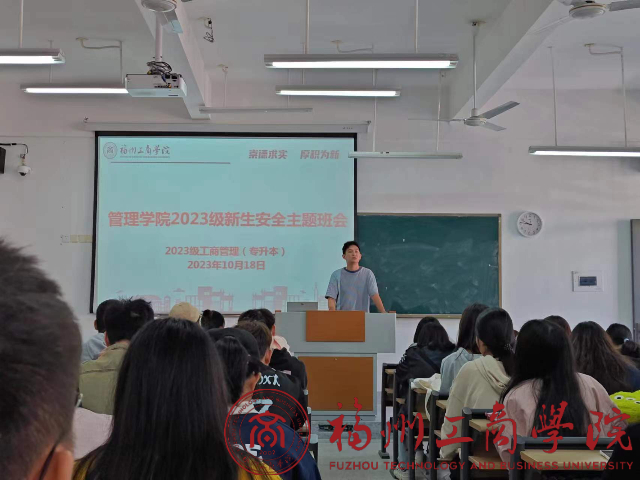 为了进一步提高学生的安全和自我保护意识,切实做好校园安全教育工作,真正把安全教育落到实处。10月18日,人人操人人舔于教学楼C403举办了“2023级新生安全教育”主题班会,会议由辅导员主持。