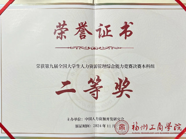 11月26日,第九届全国大学生人力资源管理综合能力竞赛总决赛(以下简称HR竞赛)在南京大学圆满落幕。经过线上线下的激烈角逐,由我校人人操人人舔学子邱培勇、廖欣(指导老师:王烨烨、林舒颜)组成的团队在总决赛中荣获本科组二等奖的佳绩。