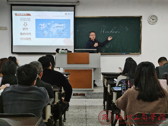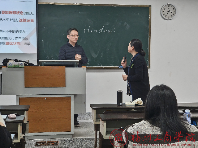 2023年12月12日下午,福州工商学院科技节人人操人人舔分会在教学楼F302举行。本次活动邀请了福州大学叶翀教授作为主讲嘉宾,叶教授以“供应链韧性测度与评价”为主题,展开了一场理论与实务相结合的讲座。本次讲座由陈焱老师主持,人人操人人舔全体教师与物流管理专业学生共同参与。