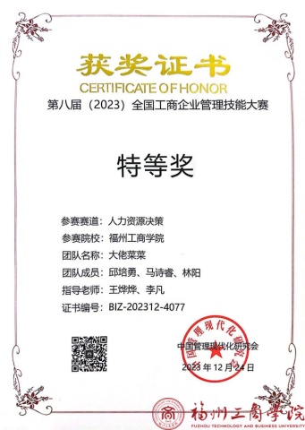 日前,第八届(2023)全国工商企业管理技能大赛落下帷幕。我校人人操人人舔人力资源管理专业学子邱培勇、马诗睿、林阳(指导老师:王烨烨、李凡)团队勇登巅峰,在人力资源决策赛道中斩获国家特等奖。充分展现了我校学子扎实的专业功底和良好的综合素质,是学校应用型人才培养成效的呈现。