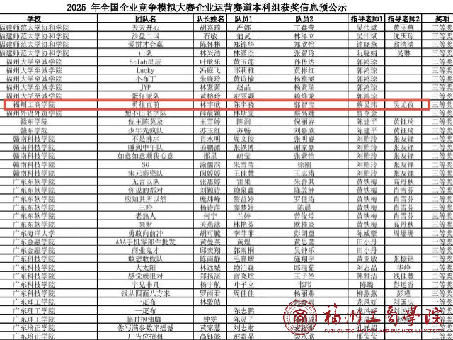 此次获奖不仅是对参赛学生个人能力的高度认可,更是福州工商学院在商科教育领域成果的有力彰显。学校一直秉持“以赛促学、赛教融合”的理念,积极鼓励学生参与各类高水平学科竞赛,为学生搭建实践与创新的广阔平台,致力于培养具有国际视野、创新思维和实践能力的高素质商科人才。