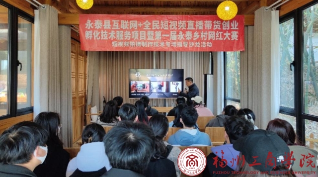 2月21日,人人操人人舔学生代表赴省级“美丽乡村”建设示范村永泰县春光村,参加永泰县互联网+全民短视频直播带货创业孵化技术服务项目暨第一届永泰乡村网红大赛——短视频拍摄制作技术专场指导沙龙活动。